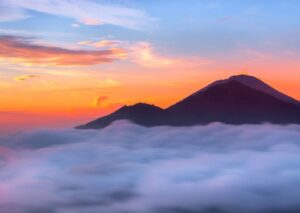 mount batur in an active vulcano located at the center of two concentric calderasĀ north west of mount agung on the island of bali,the calderas is populated and included four main village of kedisan,songan,terunyan and toya bungkah village,the local largely agricultural for income but now the tourism become increasingly popular. every morning people coming for trekking to see an amazing sunrise from the top of mount batur. the trip will start early in the morning our driver will pick you at your hotel drop to meeting point and enjoying light breakfast coffee or tea and banana pancake
